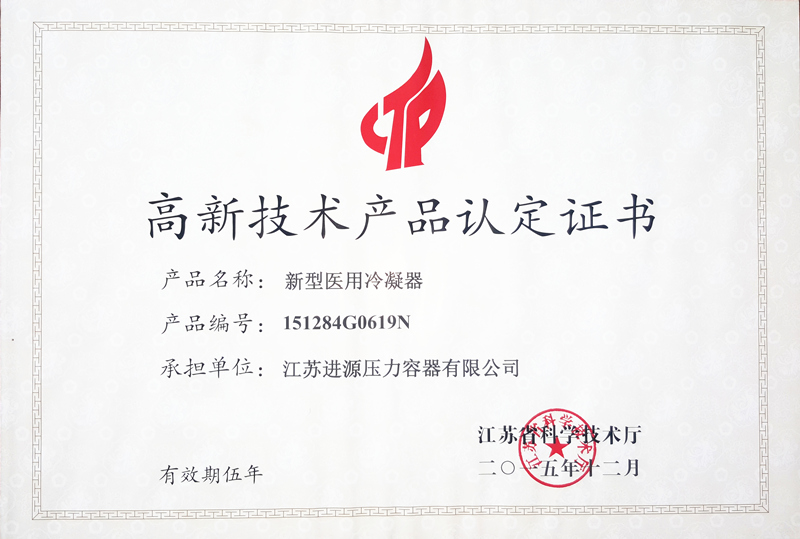 高新技術(shù)產(chǎn)品認(rèn)定證書(shū)-新型醫(yī)用冷凝器