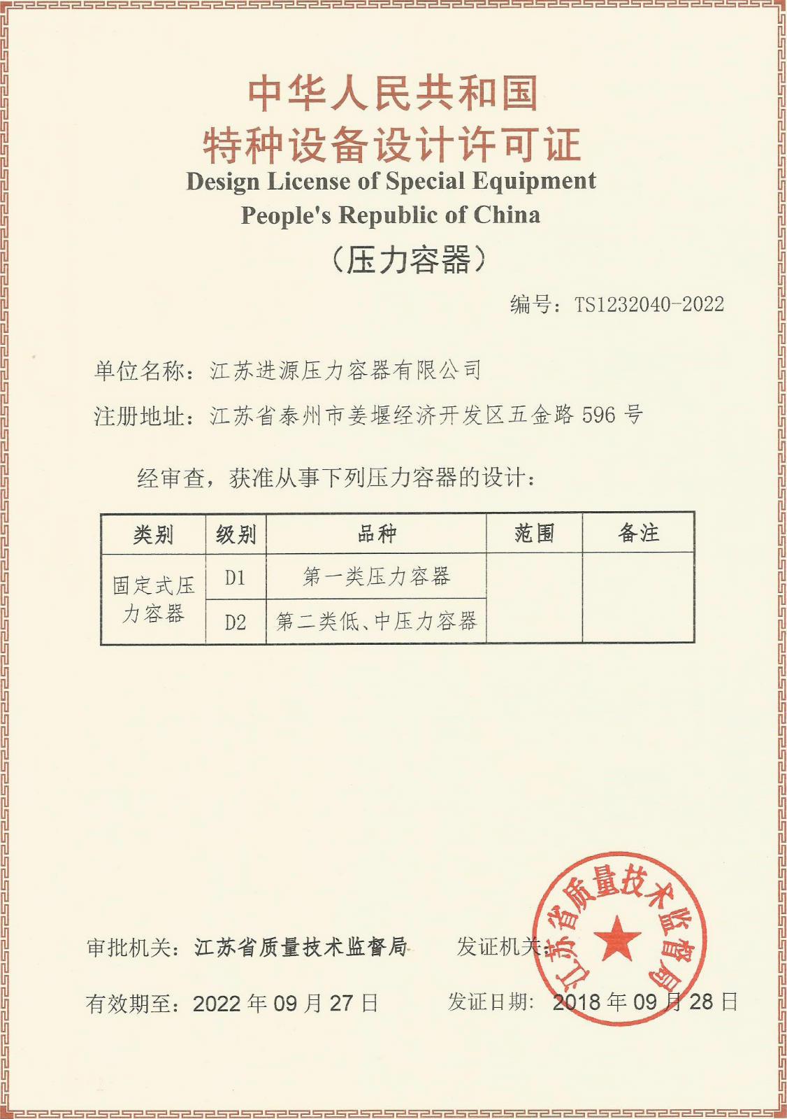 壓力容器設(shè)計(jì)許可證